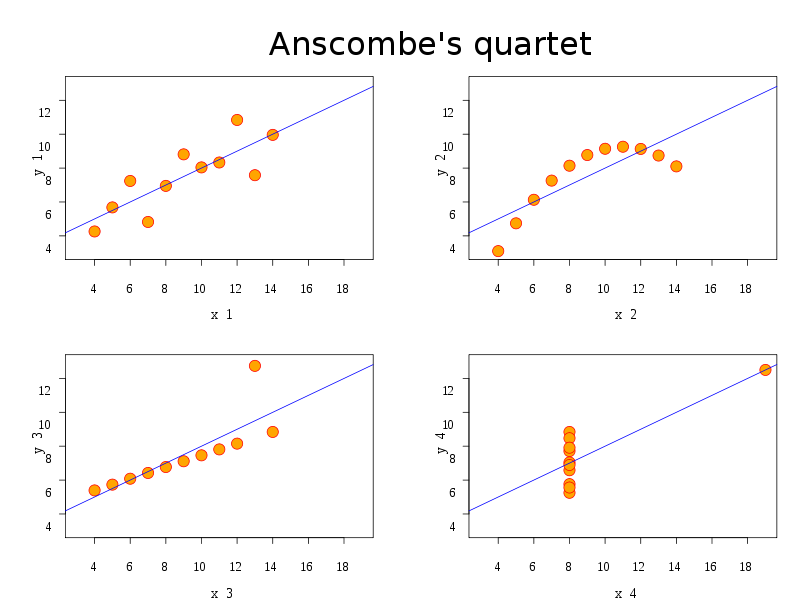 These four data sets have the same mean, variance, correlation, and linear regression coefficients!